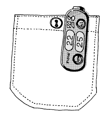 さて、これまでは、IT化の進んだオフィスの話であったが、実際には各人にパソコンがないオフィスもあるだろうし、そもそもパソコンのない冷房空間も存在する。例としてスーパーマーケットを考えてみよう。ここには冷房が入っており、従業員が何人も働いているが、1人1台のパソコンなどあるはずもなく、そもそもみんな立ったり歩いたりして仕事をしている。だから、上記のようなシステムではエアコンの温度を設定することができない。そこで、将来的な展望として、携帯電話による希望温度設定が考えられる。各人の携帯電話にパソコンの例のような温度設定ソフト(iアプリやEZアプリ)を入れて、以下同様。もちろん携帯電話からの情報を集計するサーバーが必要になる。携帯電話にソフトを入れるのが難しければ、メールで希望温度を送信できるようにしてもよい。いずれにしろ、一度このシステムができてしまえば、入力をパソコンから携帯電話に変えることはそんなに難しいことではない。だが、スーパーマーケットのような場合、従業員が携帯電話をいじっていたら、遊んでいると思われるし、お客さんもいい顔はしないかもしれない。そこで、さらに将来のこととして、専用の入力機器を作ってしまうことが考えられる。これは図3のようなもので、サーバーとは無線でつながれる。長さ6センチくらいの板状の形で、小さく、エリやポケットにとめられるので、現在の設定温度を見たり、希望温度を変更したりしてもほとんどお客さんにもわからないだろう。ひょっとすると親子の会話の減っている現状をみると、家庭でのエアコン温度設定にも使えるかもしれない。うーむ、なんか大きなビジネスチャンスのような気がしてきた。